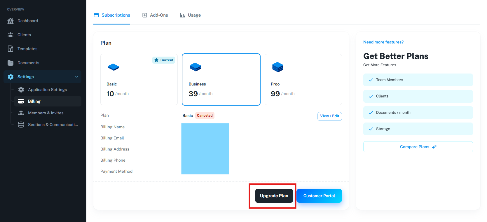 If you need more features just want to change your plan, you can upgrade or downgrade your plan any time from the Billing page in your account settings.
